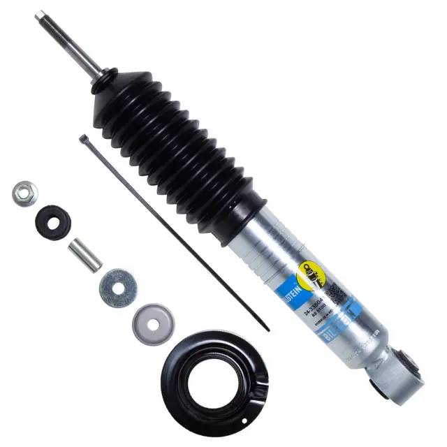 - Description: Bilstein B8 5100 (Ride Height Adjustable) shock absorbers are designed for trucks and SUVs with a front OE coilover style suspension. Multiple snap-ring grooves in the body allow for different spring seat positions, providing 0-3 inches of front lift with OE springs (depending on application). The monotube shock absorbers feature a 46mm digressive piston a with self-adjusting deflective disc valve setting. Bilstein B8 5100 (Ride Height Adjustable) shock absorbers provide increased wheel travel and improved handling. Utilizing a B8 5100 (Ride Height Adjustable) shock absorber is the easiest way to level out your vehicle.
